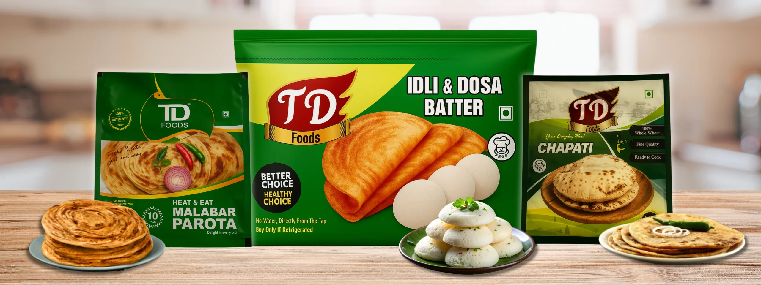 Experience the true taste of South India with TD Foods’ fresh and wholesome ready-to-cook products. From soft idlis and crispy dosas to flaky Malabar parottas and traditional chapathis — every pack is made with premium ingredients and authentic recipes for perfect results every time.